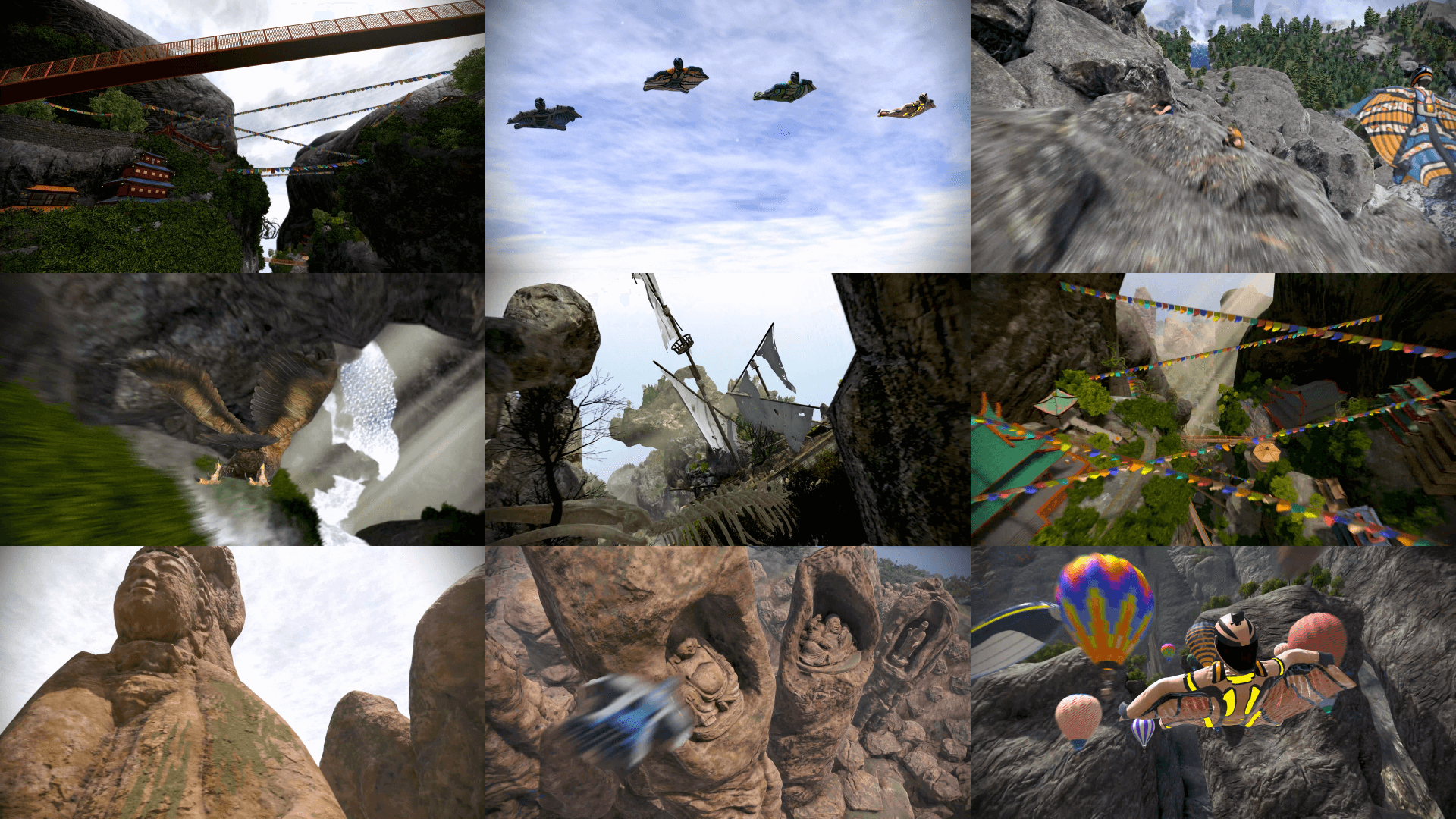 A VR skydiving ride into the sacred mountains. Full of stunning landscapes.